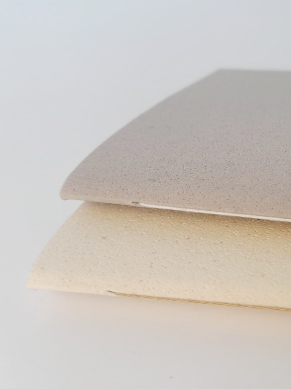 – środek uszyty ręcznie z niepowlekanego papieru premium w kolorze naturalnej bieli